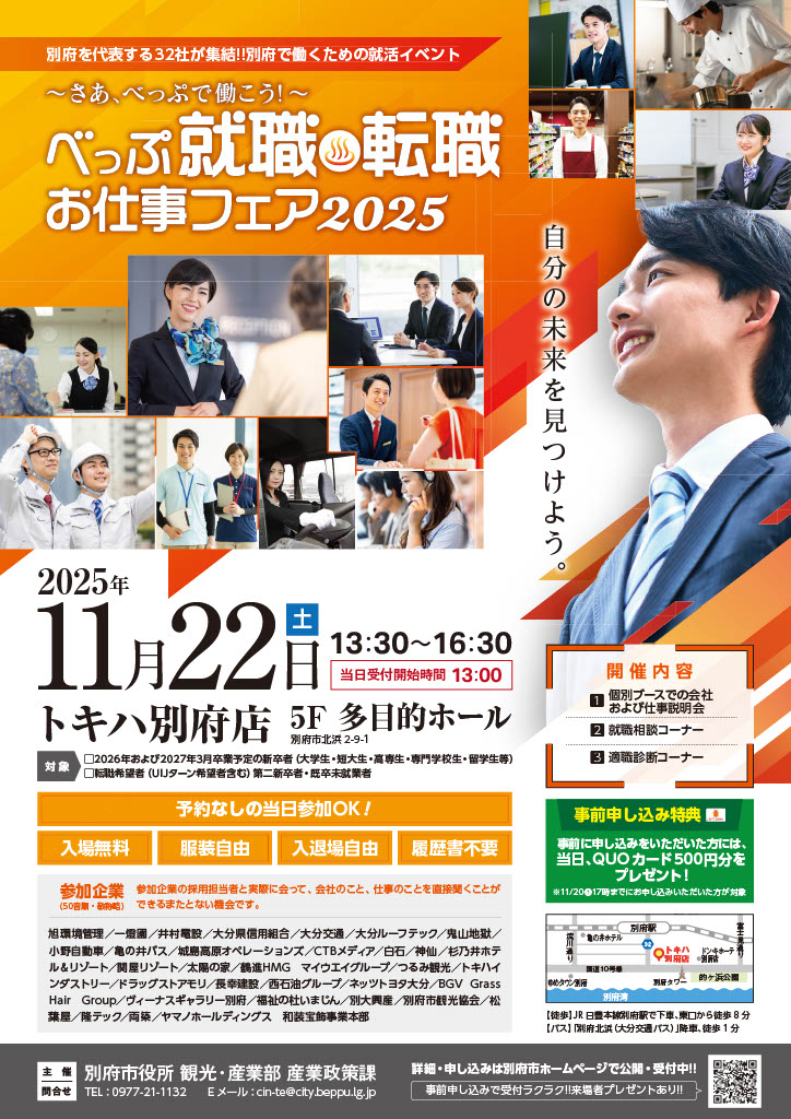 11月22日(土)べっぷ就職♨転職お仕事フェア2025に出展いたします